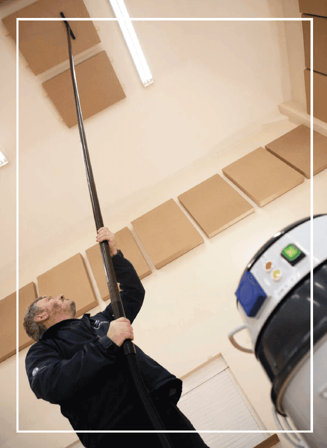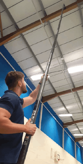 Het SpaceVac LITE-reinigingssysteem is een voordelig instapmodel voor schoonmakers die een paar meter extra bereik nodig hebben voor b.v. het op hoogte stofzuigen van trappenhuizen, hallen, entrees, plafonds, enz. De Lite Pole Kit biedt een bereik tot ca. 4,75 mtr.,